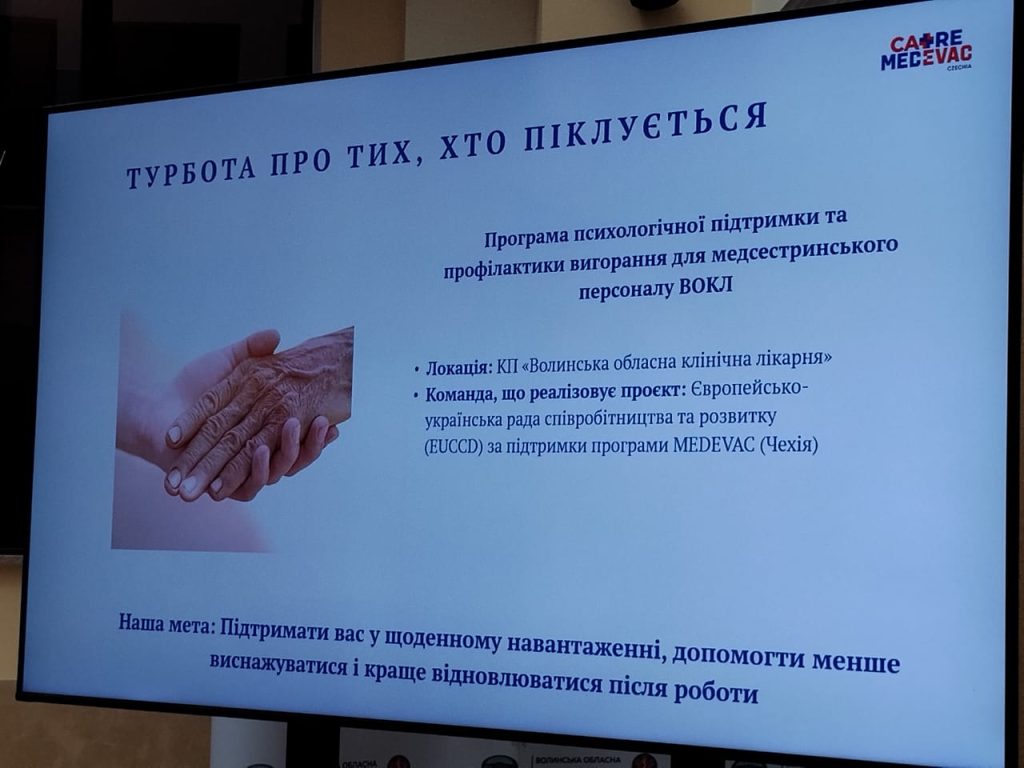 The European Ukrainian Council for Cooperation and Development (EUCCD) is launching a comprehensive programme to provide psychological support and prevent burnout among the nurses and nurse practitioners of the Volyn Regional Clinical Hospital.